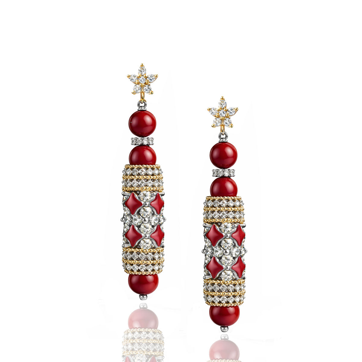 • ❤️ Elegant long drop earrings featuring rich red stones and diamond-set details