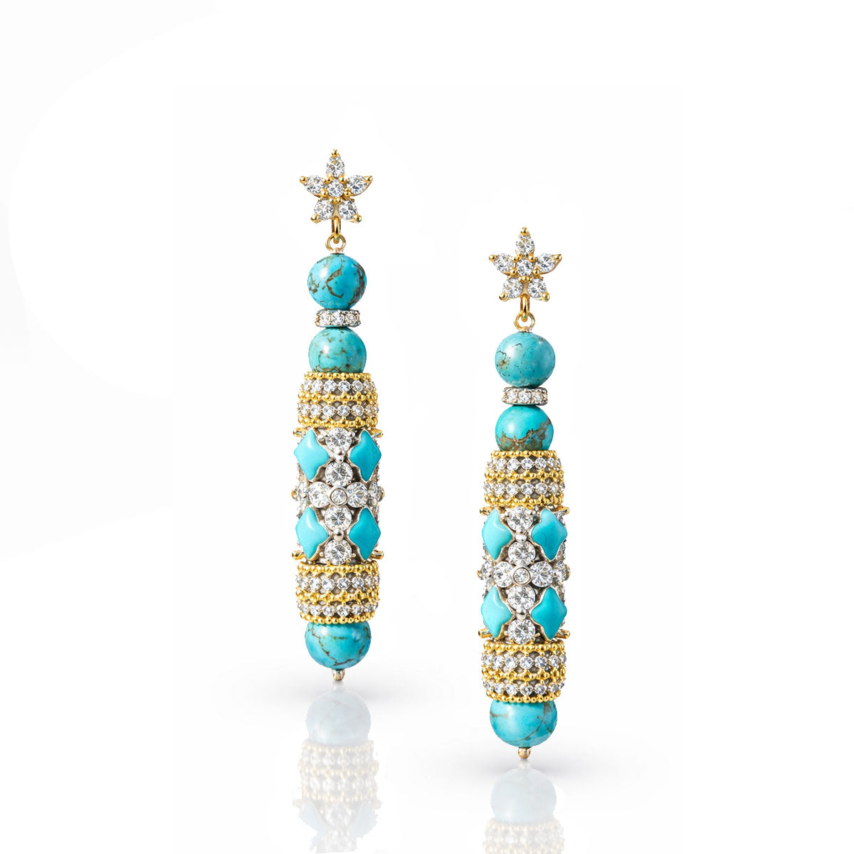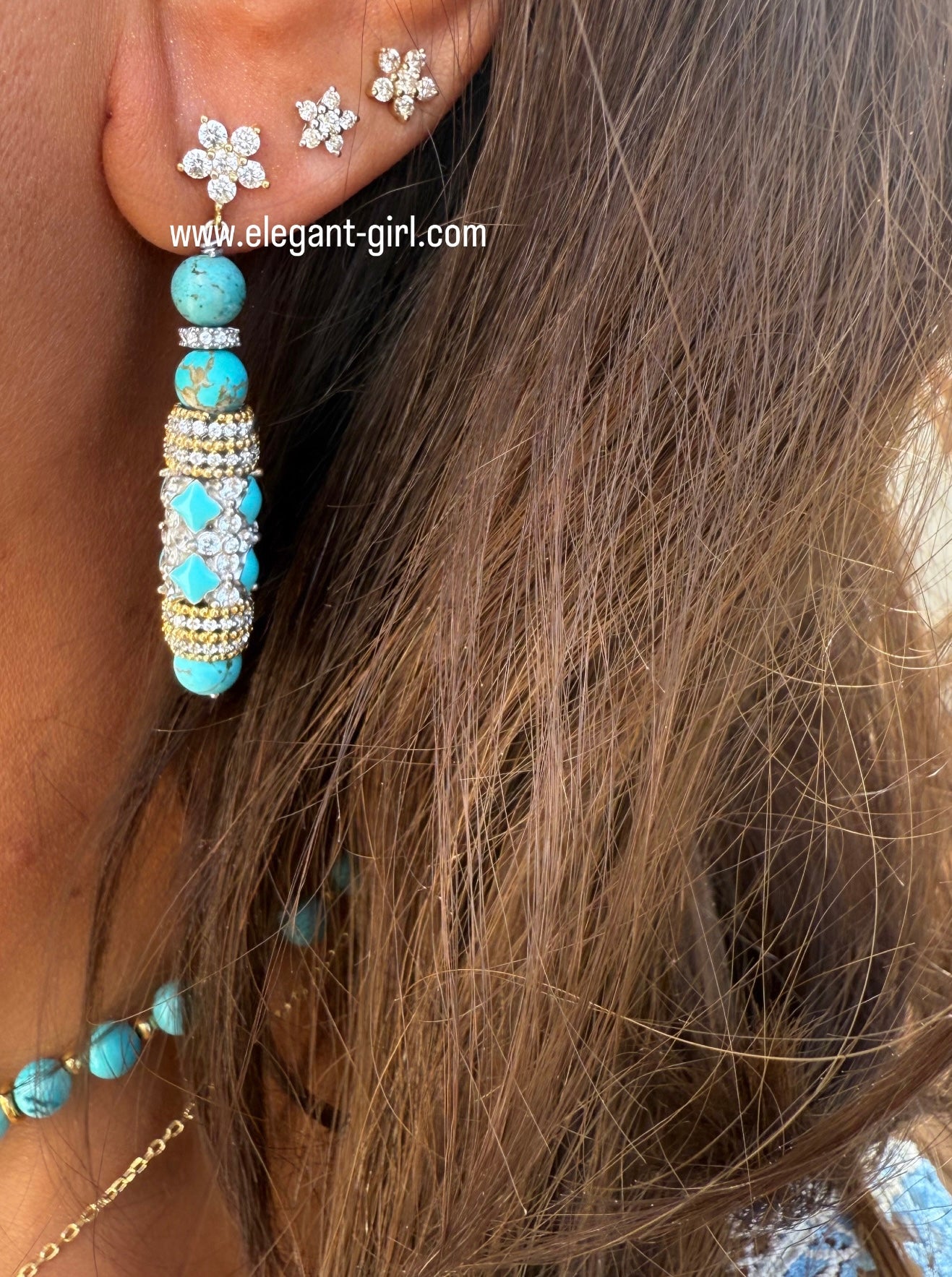 • 💙 Elegant long drop earrings combining turquoise stones with diamond-set details