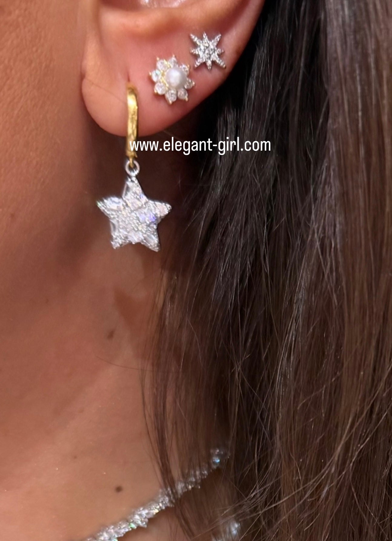 MULTI DIAMOND STAR GOLD X SILVER EARRING