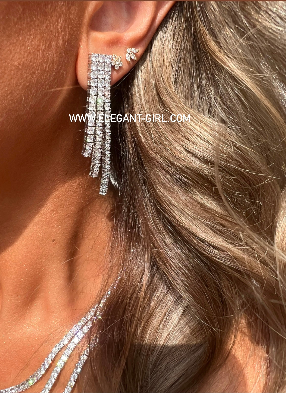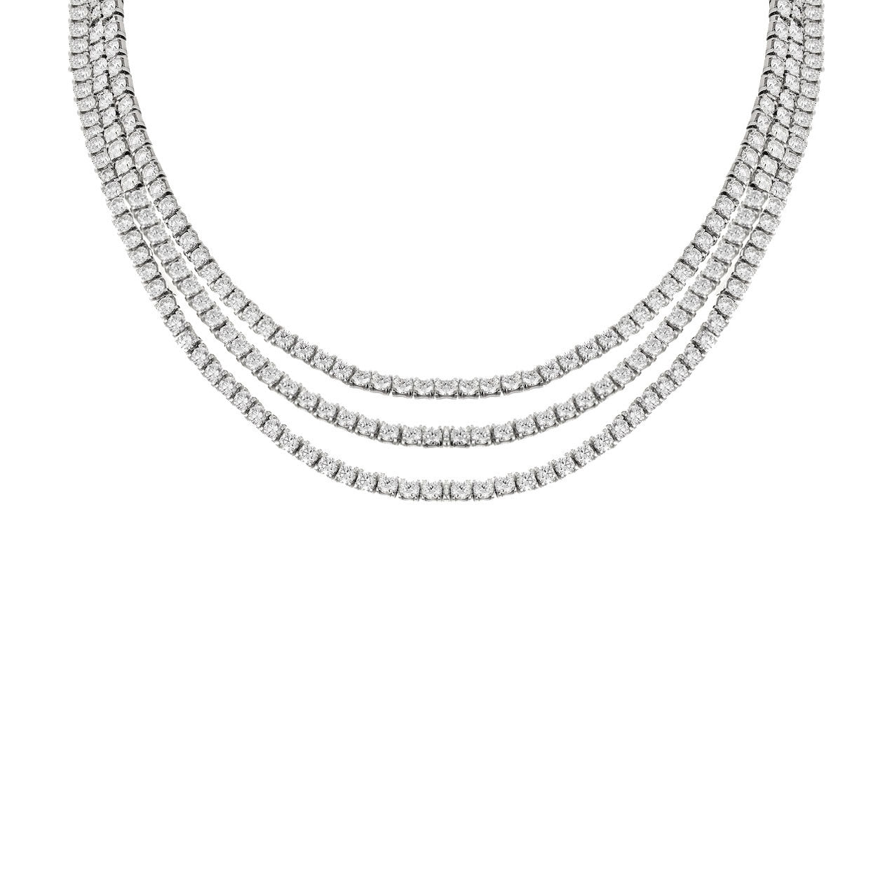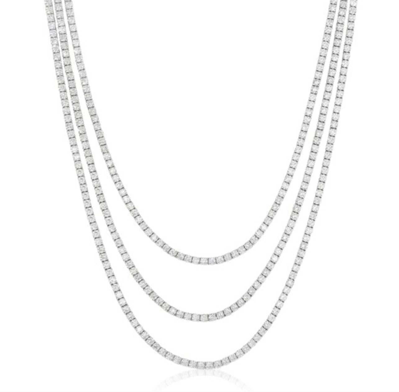 • Introducing the Layers Tennis Set, an exquisite jewelry set that will take your wardrobe to the next level! Consisting of three layers of necklaces, diamond earrings, and a bracelet, this set will set you apart and give you a sparkling, stylish look. Classy yet modern, it's sure to make a statement!