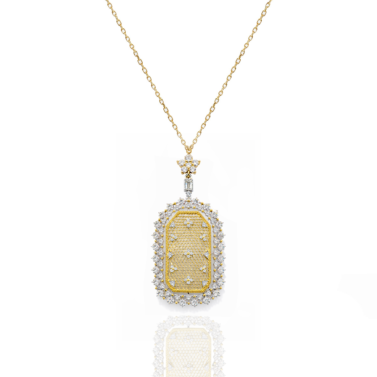 ✨ شبكة دقيقة مطرزة على الفضة يدوياً تعكس دقة الصياغة وحرفية العمل.