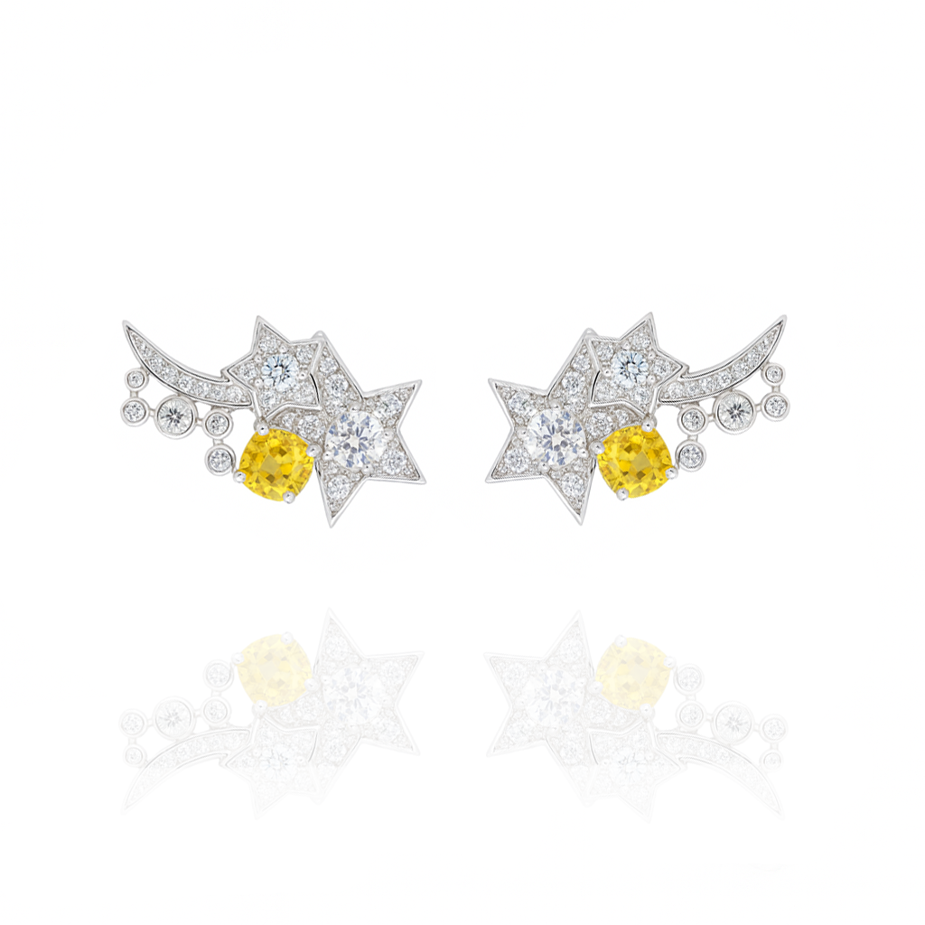 💛 حجر أصفر فاخر يضيء الأذن كأنه شمس صغيرة بين النجوم