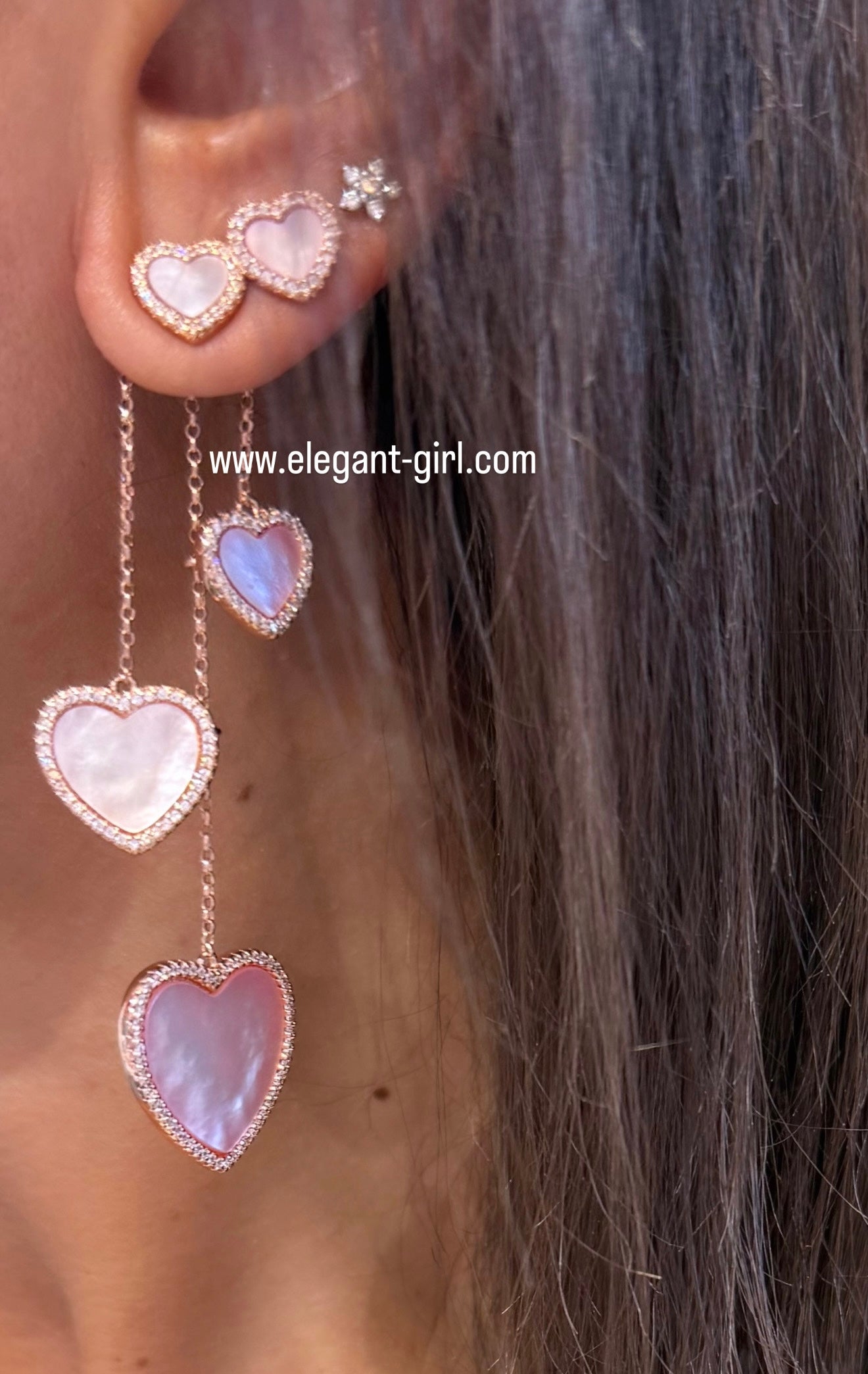 PINK MOTHER OF PEARL MULTI HEART EARRING