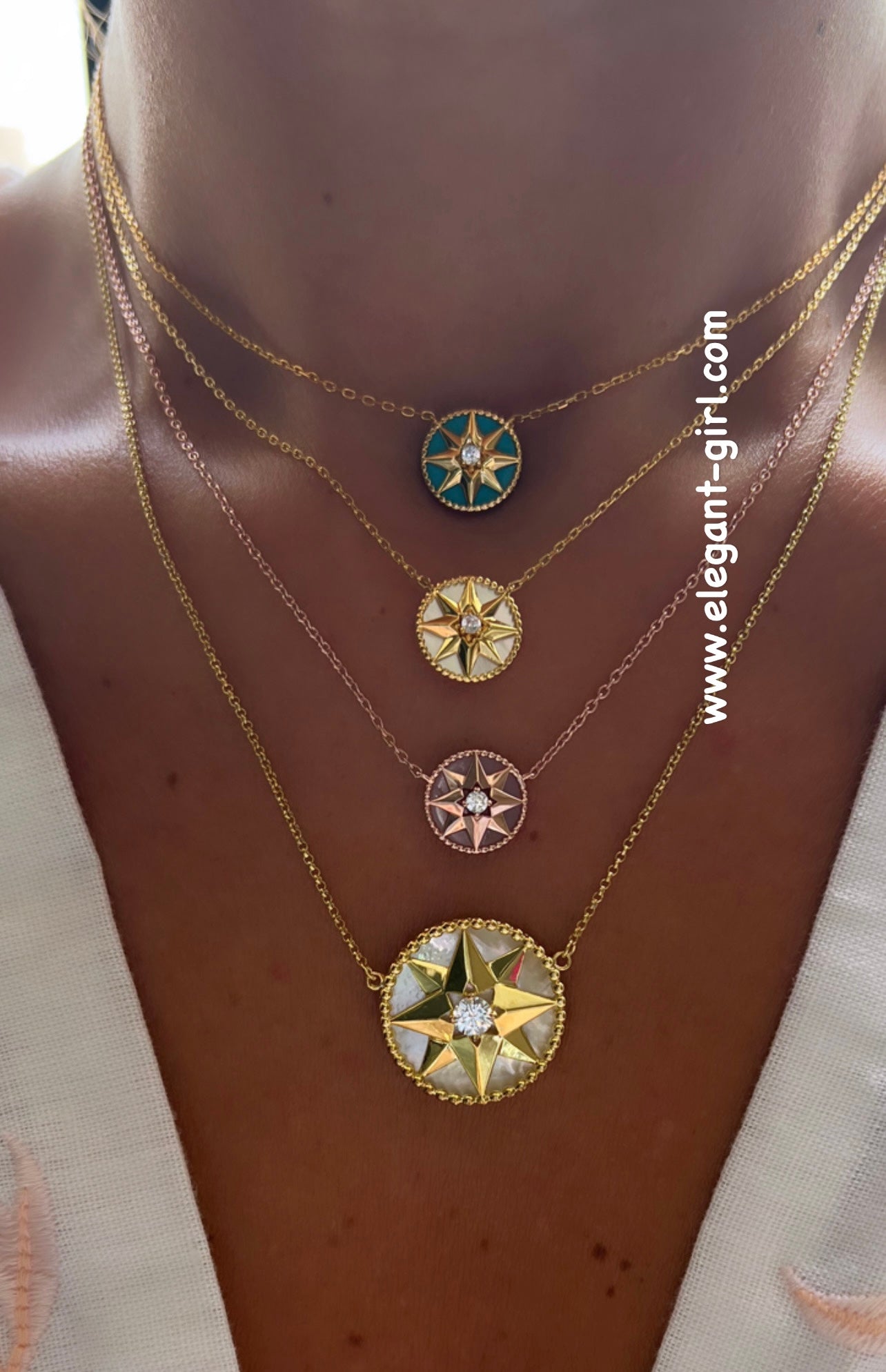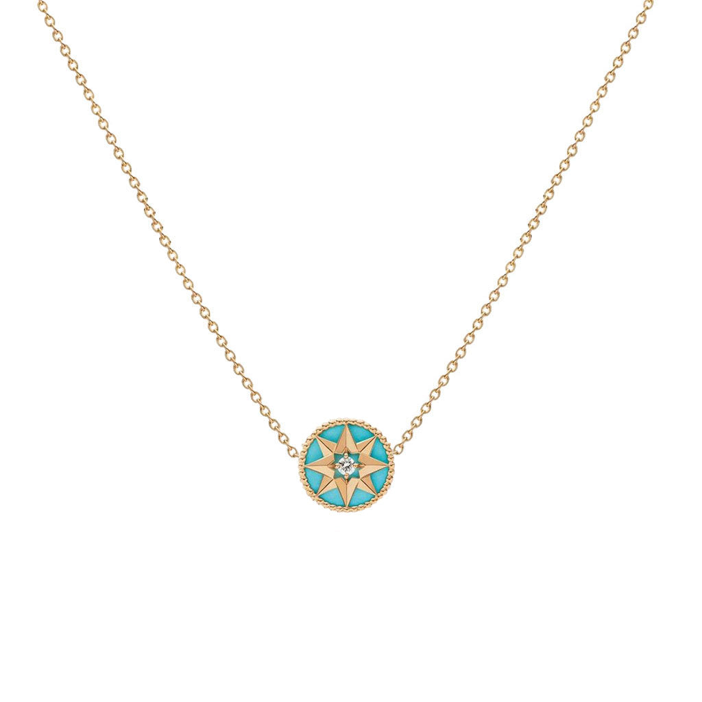 BLUE ROSE DES VENTS IN GOLD NECKLACE