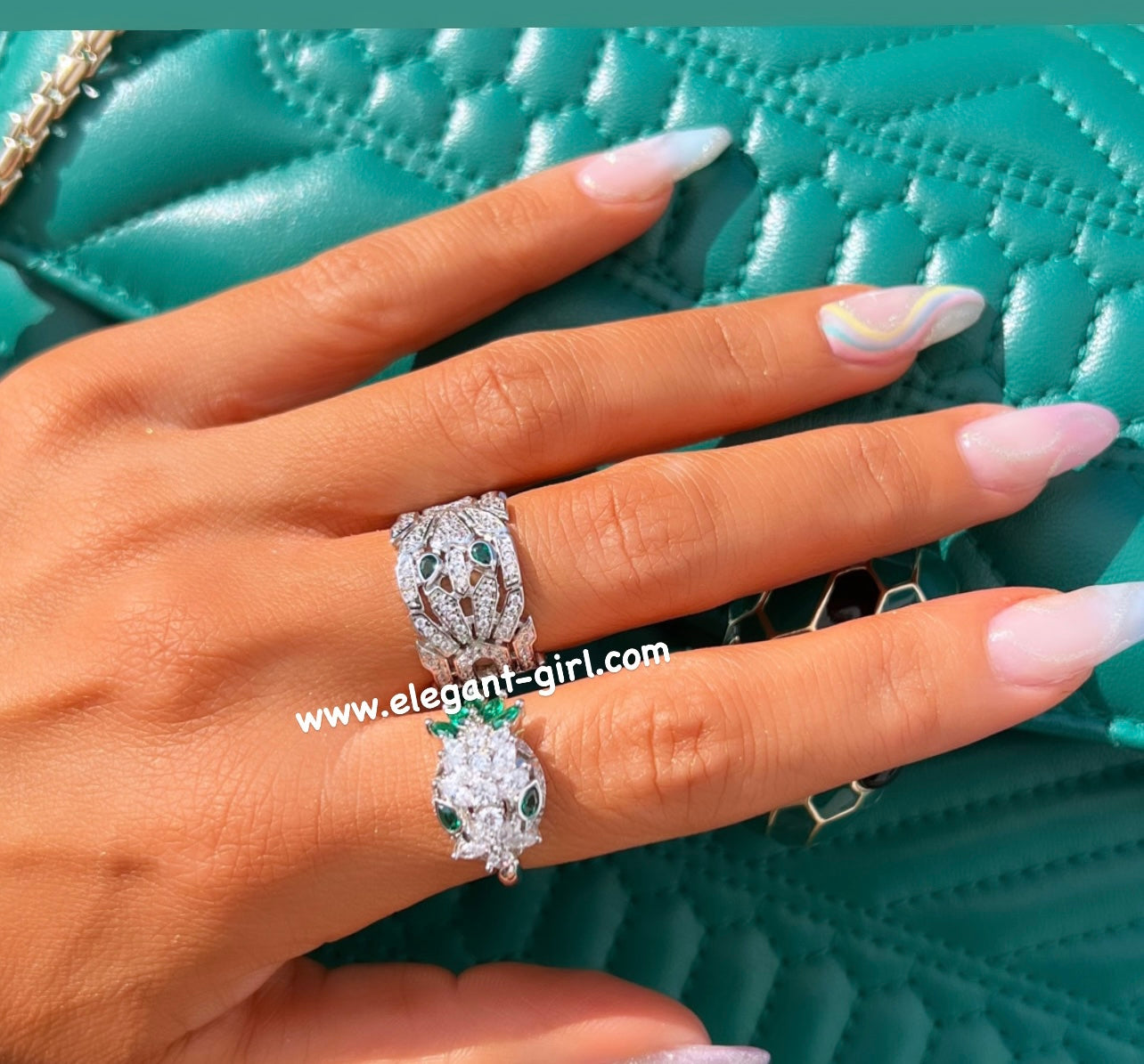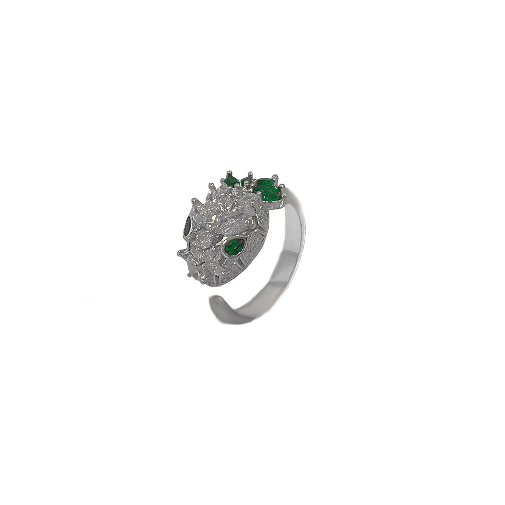 SILVER GREEN SERPENTI HEAD VIPER RING